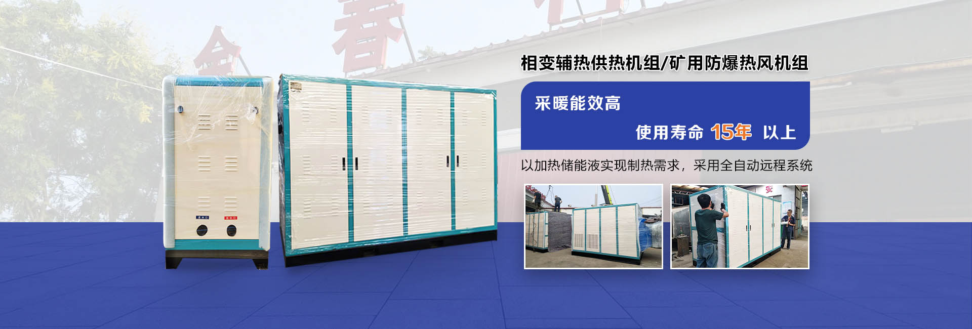 本公司專業(yè)生產相變輔熱供熱機組、礦用防爆熱風機組,可代替燃煤、燃油、燃氣鍋爐,運行成本低,具有加熱快、熱效率高、便于操作,節(jié)能環(huán)保等特點,是新一代理想的環(huán)保節(jié)能產品。